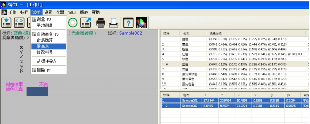 同時(shí)可以通過“試樣->重命名/刪除”對測試試樣進(jìn)行重命名和刪除操作。