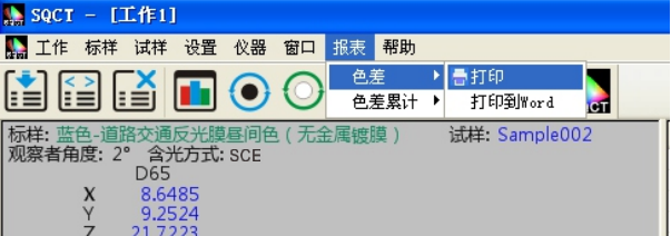 對試樣的測試結(jié)果可以通過打印菜單生成測試報(bào)表,選中要打印的試樣和標(biāo)樣,執(zhí)行“報(bào)表->色差->打印/打印到word”或“報(bào)表->色差累計(jì)->打印/打印到word”,將測試結(jié)果打印出來,如圖15、16所示。
