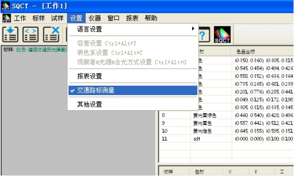 針對國內(nèi)交通路標(biāo)使用較多的標(biāo)準(zhǔn)GB/T?18833,SQCT軟件將該標(biāo)準(zhǔn)中的標(biāo)準(zhǔn)色域納入其中,客戶只需根據(jù)自己需要進(jìn)行選擇即可。