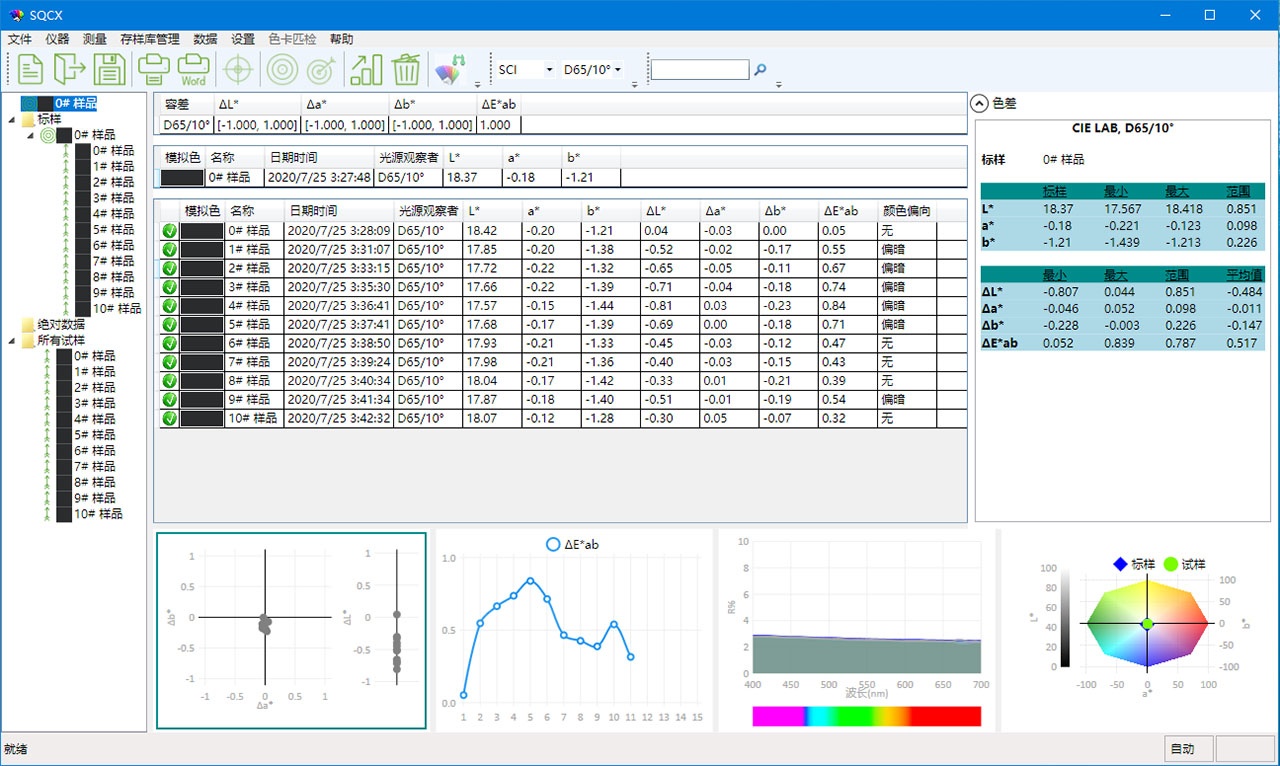 TS7036分光色差儀搭配的SQCX品質(zhì)管理軟件,適用于各個行業(yè)的品質(zhì)監(jiān)控和顏色數(shù)據(jù)管理。將用戶的顏色管理數(shù)據(jù)化,比較顏色差別,生成測試報告,提供多種色空間測量數(shù)據(jù),定制化客戶的顏色管理工作。